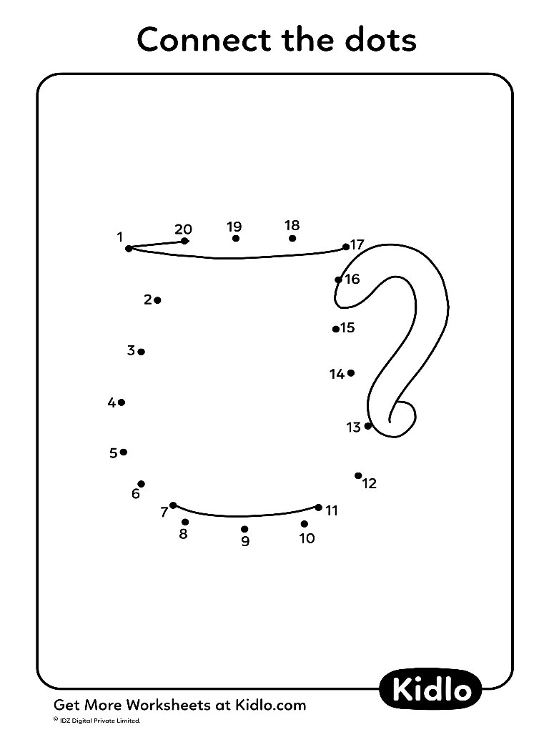 Learn number counting 1-20 easily with this connect the dots worksheet. This worksheet will help your child in learning numbers 1-20 easily. The child will have to join the dots and complete the picture. 35 printable worksheets for fun and learning counting! 😊
