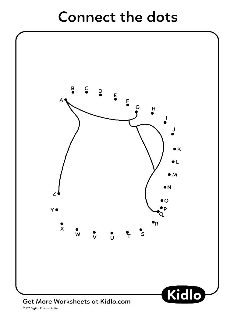 Learn alphabets A-Z easily with this connect the dots worksheet. This worksheet will help your child in learning alphabets in capital letters A-Z easily. The child will have to join the dots and complete the picture. 35 printable worksheets for fun and learning counting! 😊