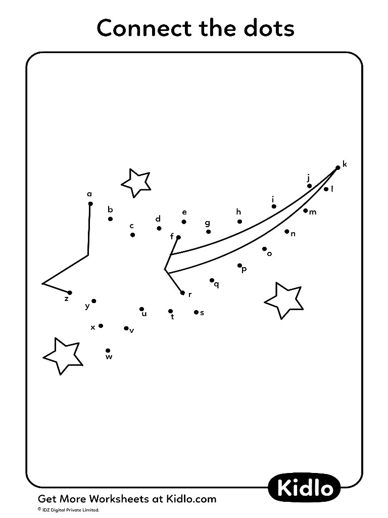 Learn alphabets a-z easily with this connect the dots worksheet. This worksheet will help your child in learning alphabets in small letters a-z easily. The child will have to join the dots and complete the picture. 35 printable worksheets for fun and learning counting! 😊