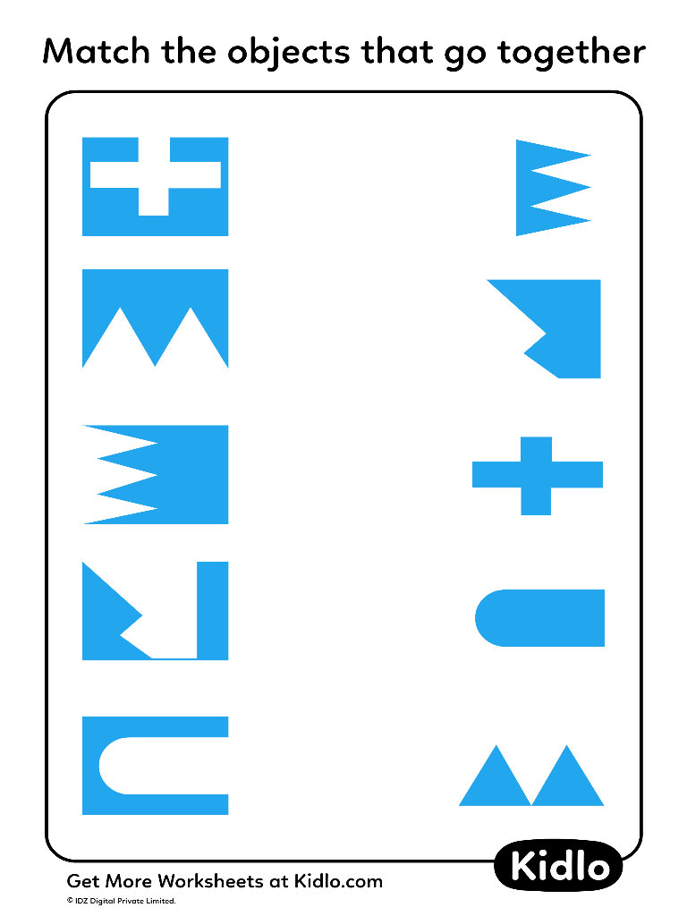 Get ready to match. Teach your child how to match the pictures to its shape with the help of this worksheet. In this matching worksheet, kids have to match the pictures from the first column to the objects that go together placed randomly in the second column which will help your child to identify & match the identical shapes. It will build their visual discrimination skills & gain valuable knowledge. 20 printable worksheets to make learning experience enjoyable for your child! 😊
