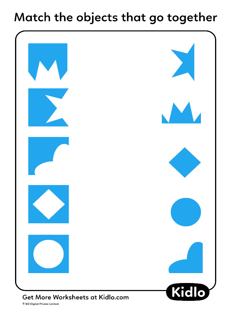 Get ready to match. Teach your child how to match the pictures to its shape with the help of this worksheet. In this matching worksheet, kids have to match the pictures from the first column to the objects that go together placed randomly in the second column which will help your child to identify & match the identical shapes. It will build their visual discrimination skills & gain valuable knowledge. 20 printable worksheets to make learning experience enjoyable for your child! 😊
