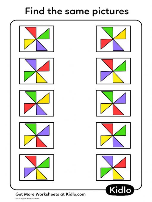 In this matching worksheet, kids have to match the pictures from the first column to the images placed randomly in the second column which will help your child to identify & match the identical pictures. This will help them improve concentration, build visual discrimination skills & gain valuable knowledge. This is worksheet 11 in this series.