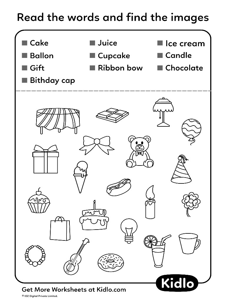 Get ready to match. Teach your child how to match the words to its pictures with the help of this worksheet. This worksheet will help the child to identify the picture from a bunch of other pictures by reading the words. It will build their visual discrimination skills. 20 printable worksheets to make learning experience enjoyable for your child! 😊